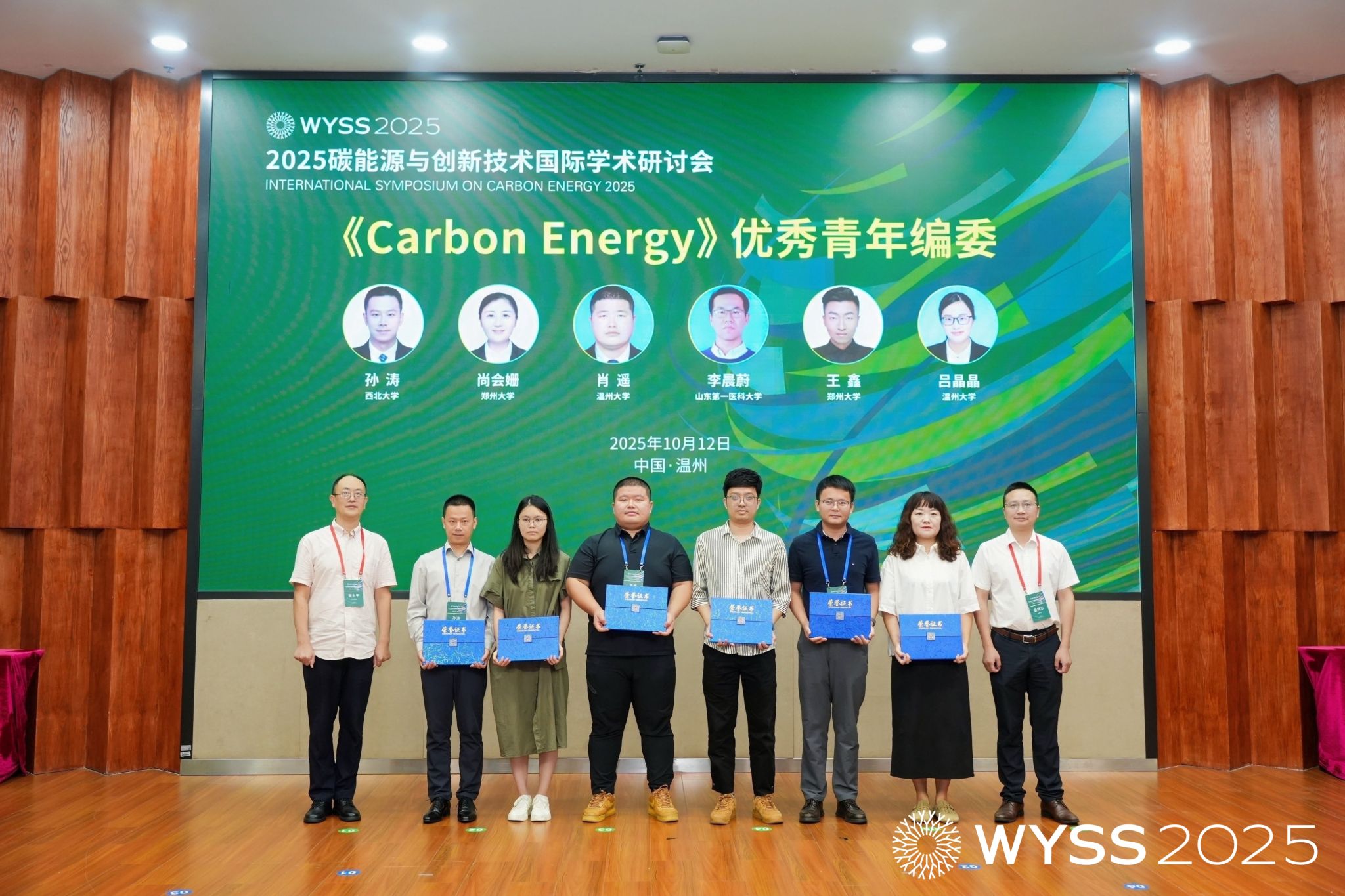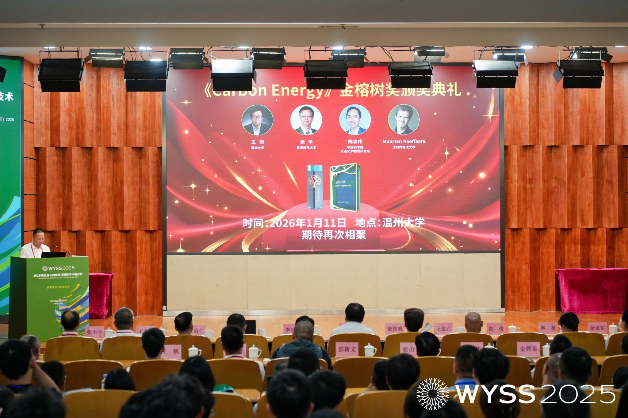 开幕式现场亮点纷呈。《Carbon Energy》(碳能源)・金榕树奖获奖名单正式揭晓,清华大学王训教授、香港城市大学张华教授、中国科学院大连化学物理研究所陈忠伟研究员、比利时鲁汶大学 Maarten Roeffaers 教授 4 位学者获此殊荣,颁奖典礼将于 2026 年 1 月 11 日举行。《Carbon Energy》・优秀青年编委奖同步颁发,Wiley出版集团出版合作总监张大平与该杂志执行执行编辑金辉乐,为西北大学孙涛、郑州大学尚会姗、温州大学肖遥等 6 位青年学者颁奖,激励青年力量深耕碳能源领域。