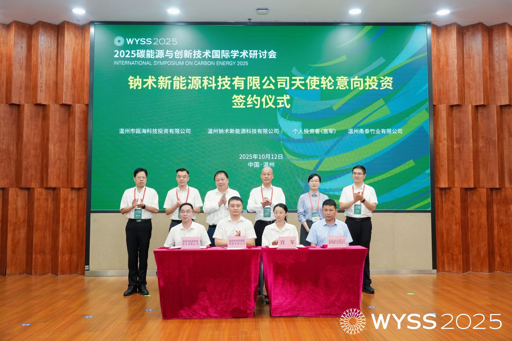 作为产学研融合的重要成果,钠术新能源科技有限公司天使轮意向投资签约仪式举行。温州大学碳中和技术创新研究院院长、钠术新能源创始人侴术雷,个人投资者宫军、温州市瓯海科技投资有限公司董事长兼总经理黄浩然等投资方代表及产业合作方温州甬泰竹业有限公司陈正汉上台签约;赵敏校长、王达武副主席、朱启仁副部长、瓯海区常务副区长林蔓、温州市科技局副局长金龙军、温州市经信局总工程师林剑共同见证,为温州碳能源技术产业化注入新活力。